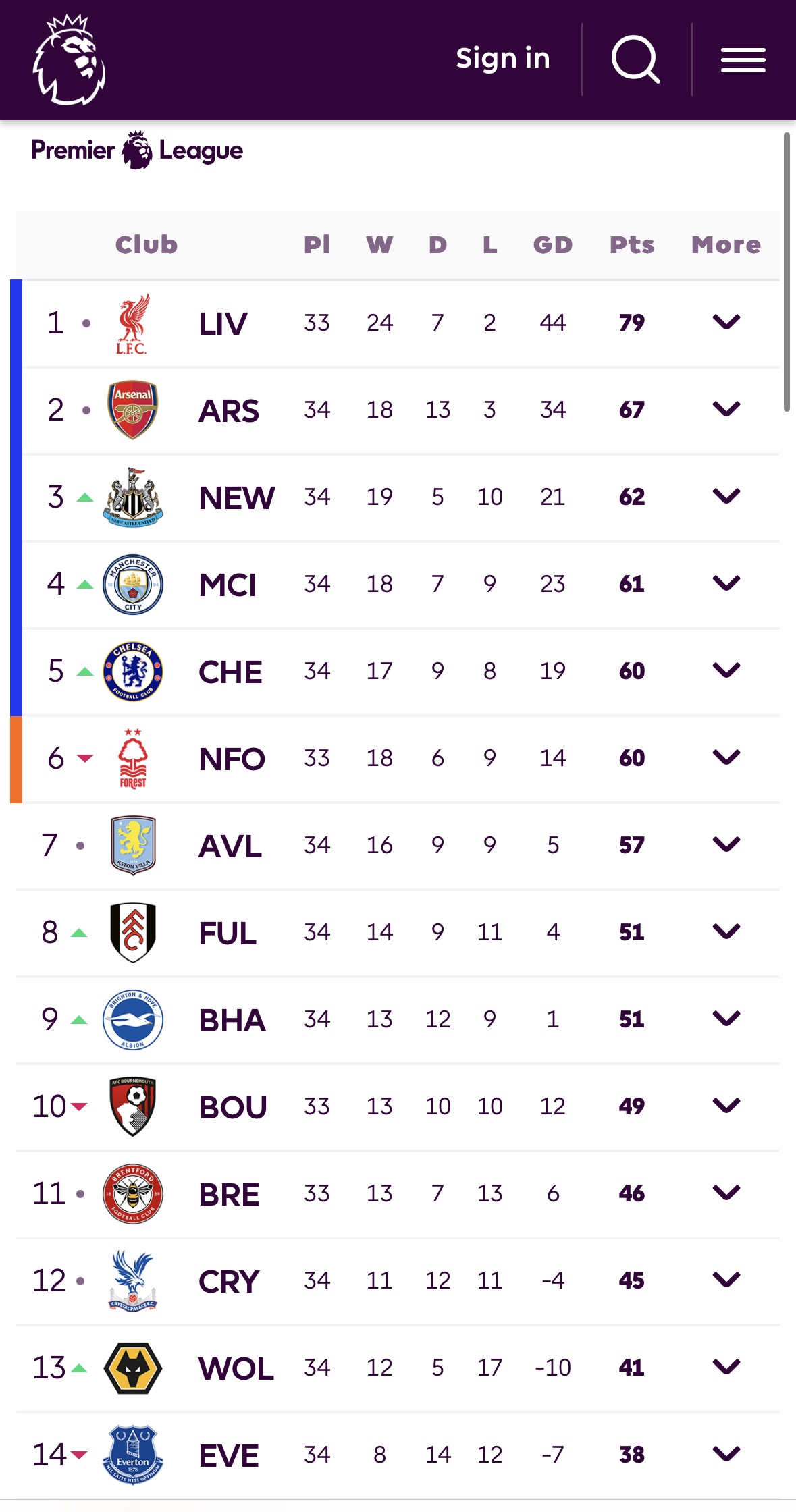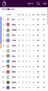 Premier League Table