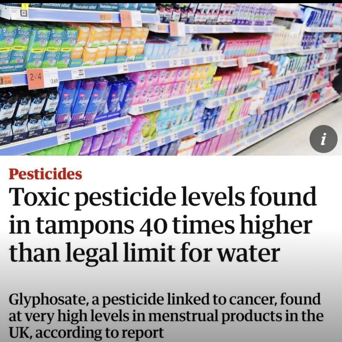 Despite growing research linking glyphosate to conditions such as Parkinson’s disease, infertility, and autoimmune disorders, no UK regulations currently require testing of menstrual products for pesticide residues.