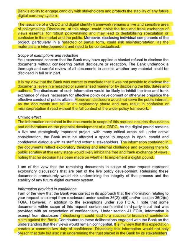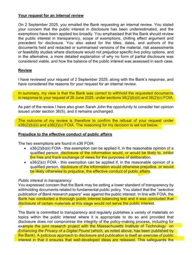 This means that, for the second time in two years, the Bank has refused to release documents that could reveal how digital currency and identity systems may be linked in UK policy planning.
