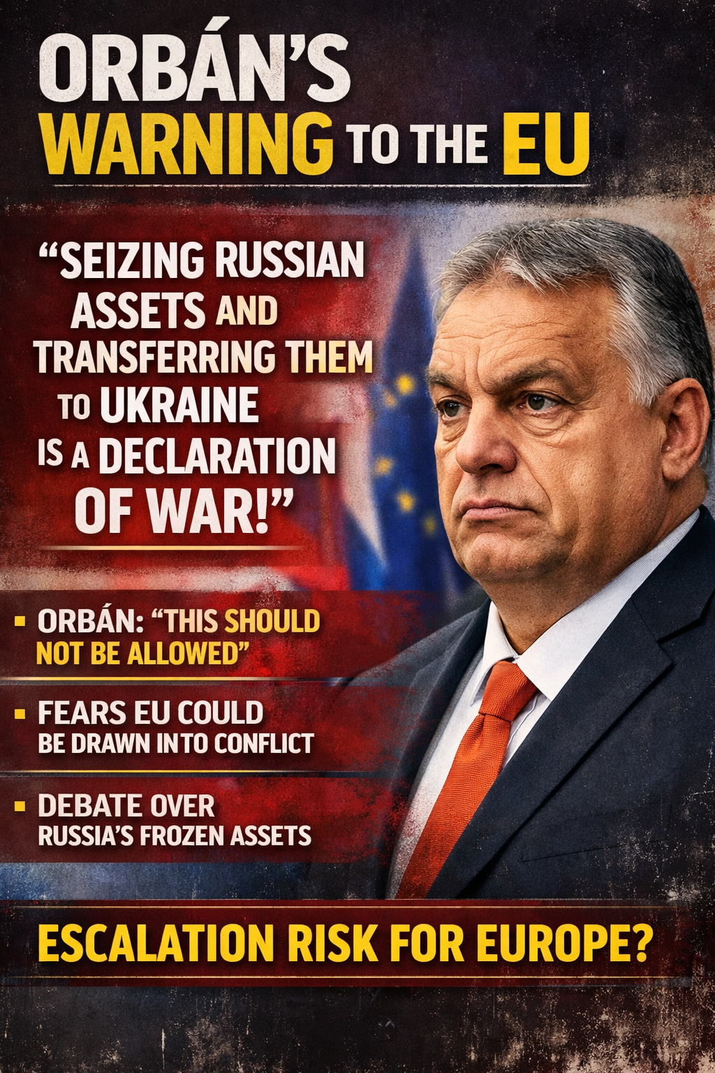 Hungarian Prime Minister Viktor Orbán has warned that seizing frozen Russian assets and transferring them to Ukraine would amount to a “declaration of war,” cautioning that such a step could directly draw the European Union into the conflict with Russia.